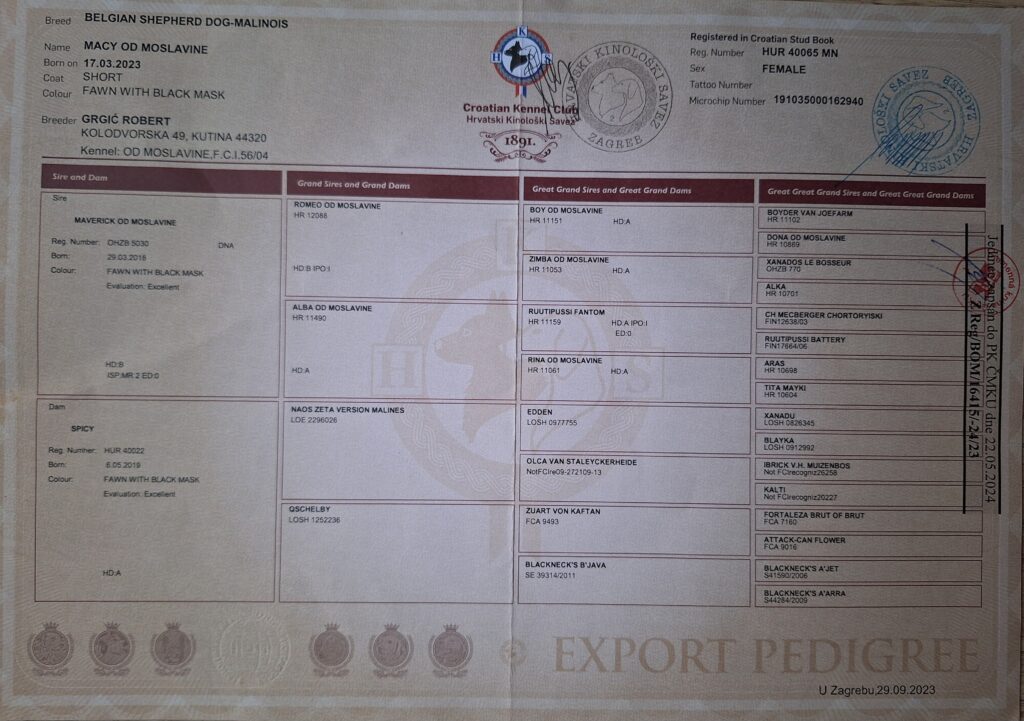 19. února 2026 se Macy narodilo deset štěňátek – 3 holky a 7 kluků. Oba rodiče jsou ringové krve, Macy je import ze zahraničí, taktéž krytí je zahraniční, Mailo ještě v ČR nekryl. Jedná se tedy o pro ČR zajímavou krev.